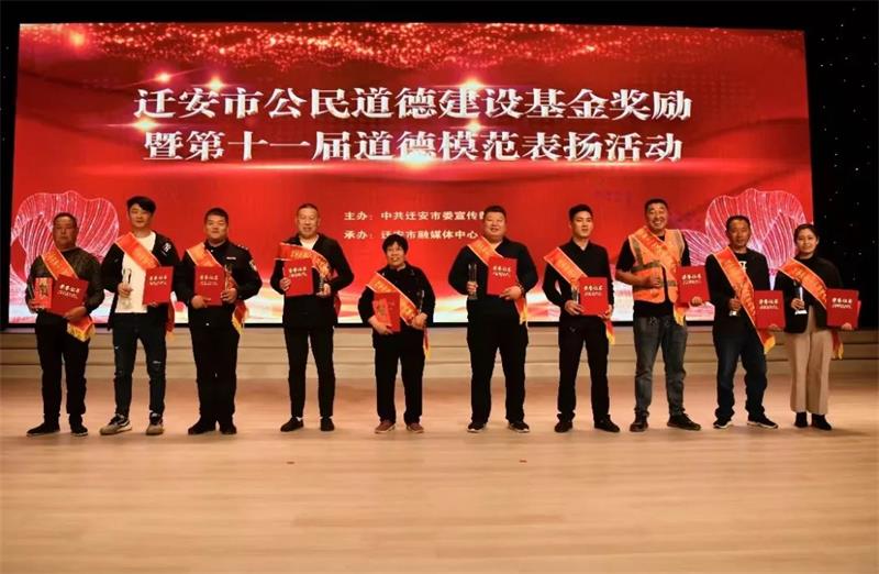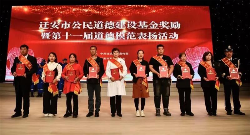 德耀水城,善行迁安。5月8日,迁安市公民道德建设基金奖励暨第十一届道德模范表扬活动在迁安市融媒体中心一号演播厅举行。来自全市不同行业的10名道德模范、10名道德模范提名奖获得者和2022年度“十大文明标兵”在掌声和赞许中接受属于他们的荣光礼赞。